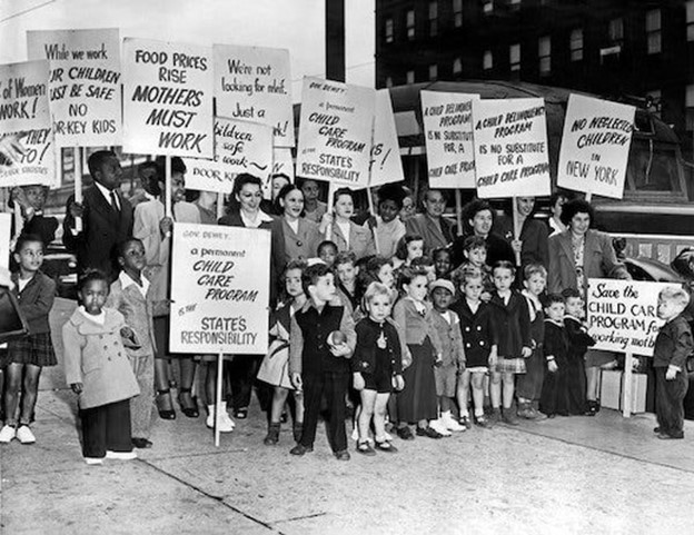 New York mothers protesting for more childcare during World War II
