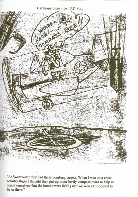 One day at Sweetwater, I let the cat out of the bag that I could play the bugle, so I got slapped with the job of playing Reveille at dawn and Taps at the end of the day ordered by Director Jackie Cochran. There was a woman who worked in the hangars at night, and wept every time she heard me blow taps, as she had lost her husband in the war,”